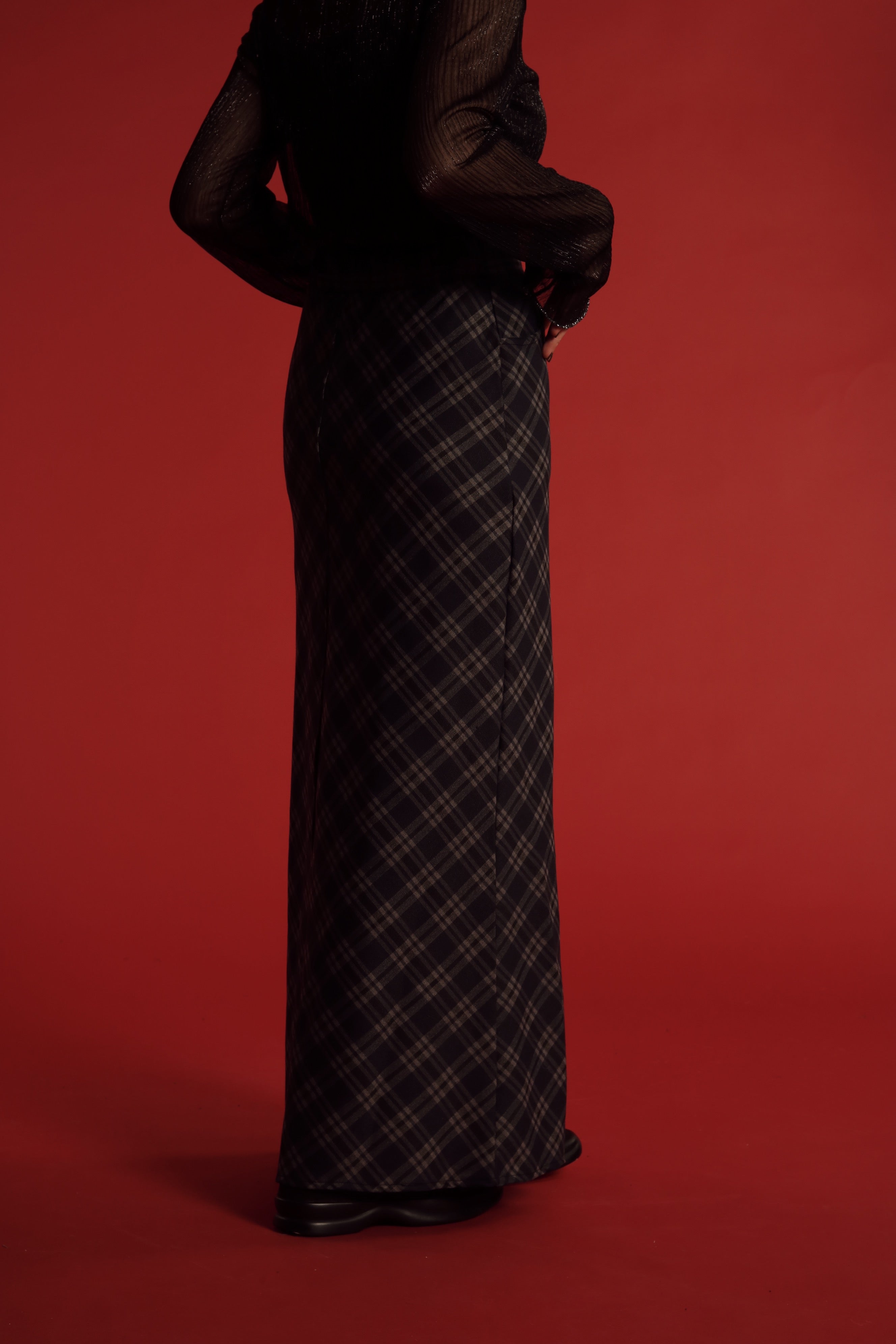 Checkered Slit Skirt (Navy)