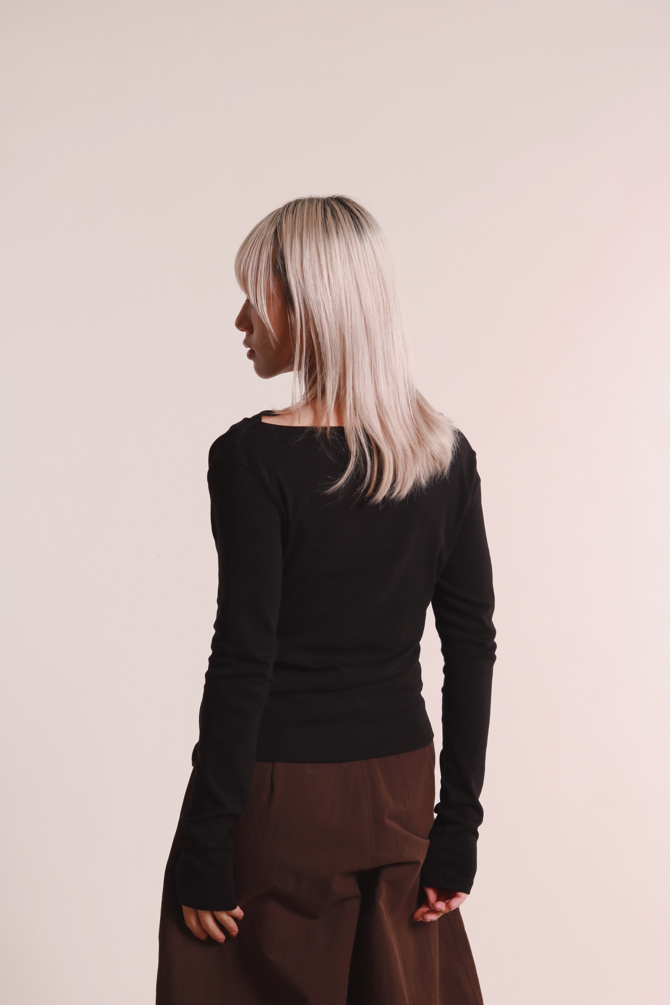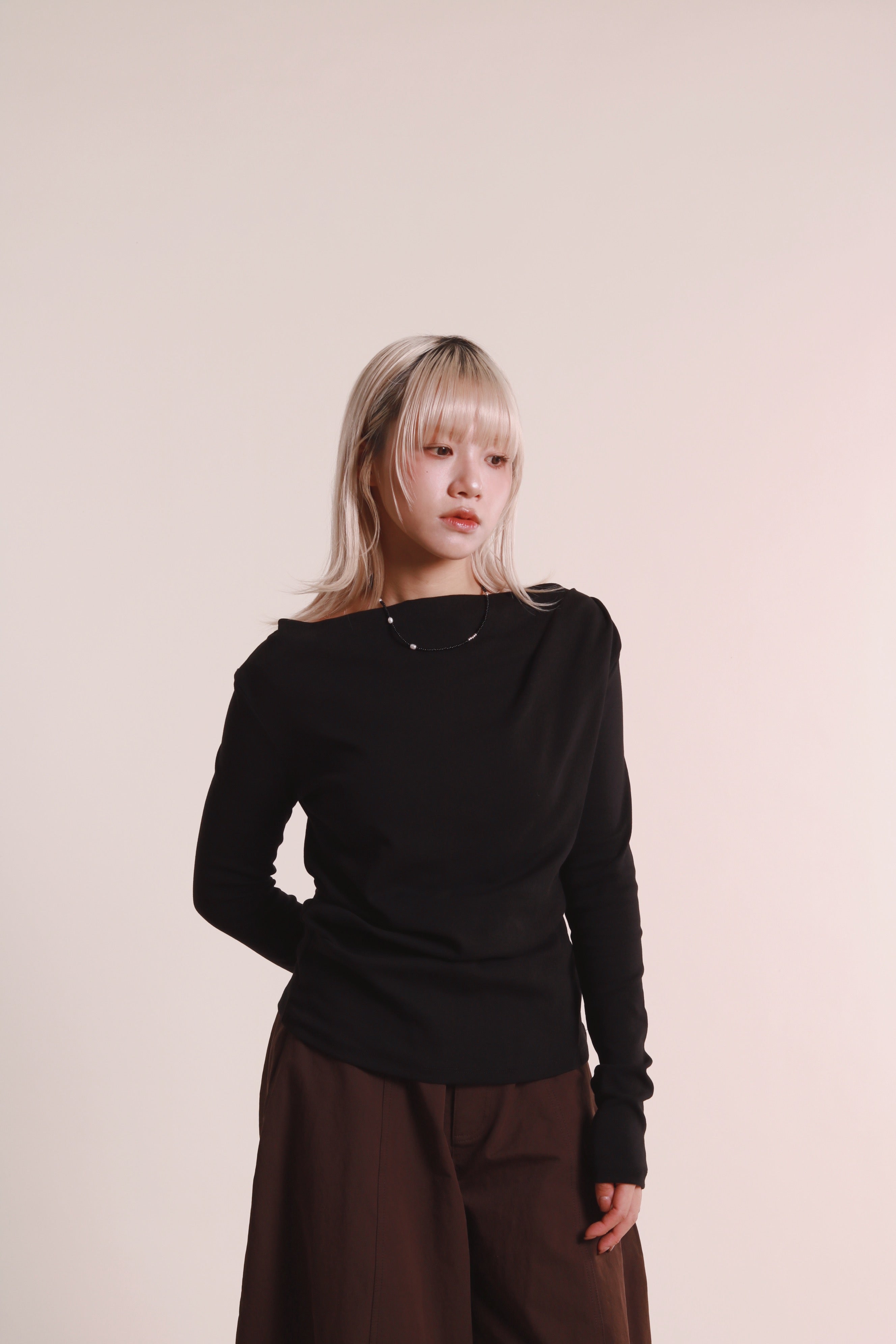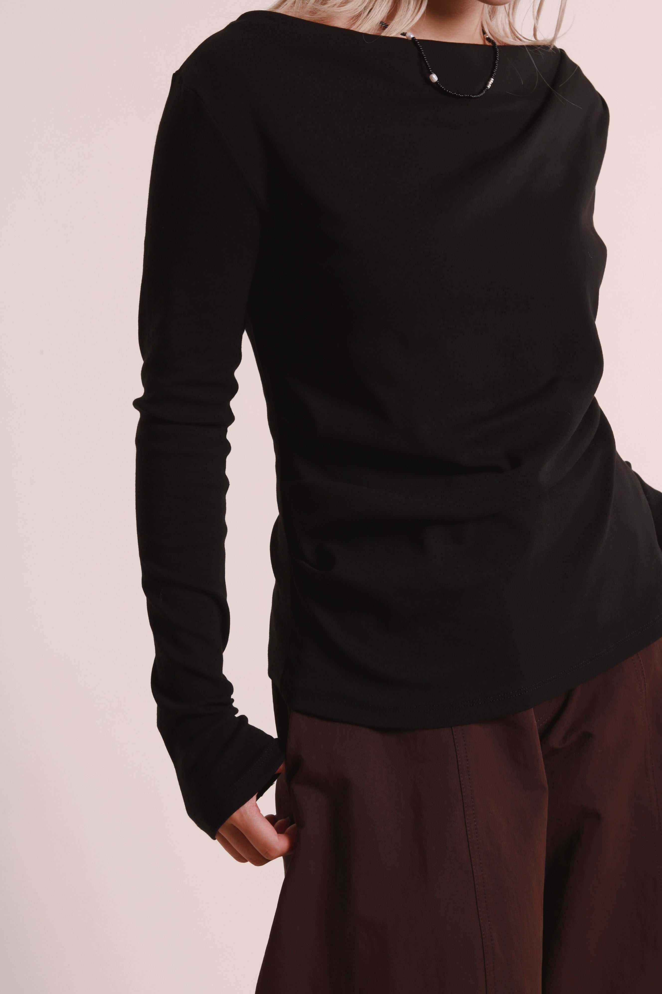 Gathered Long Tee (Black)