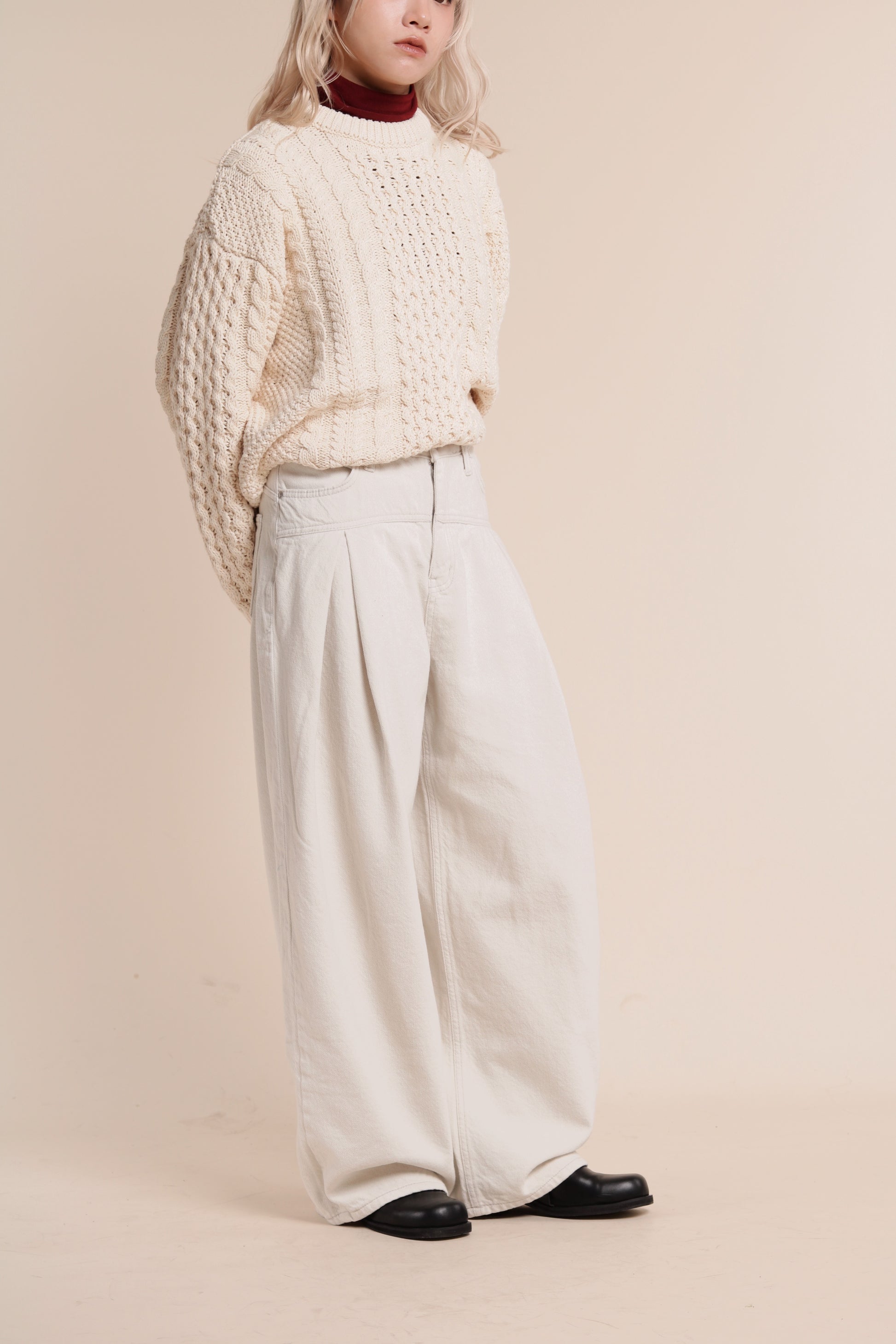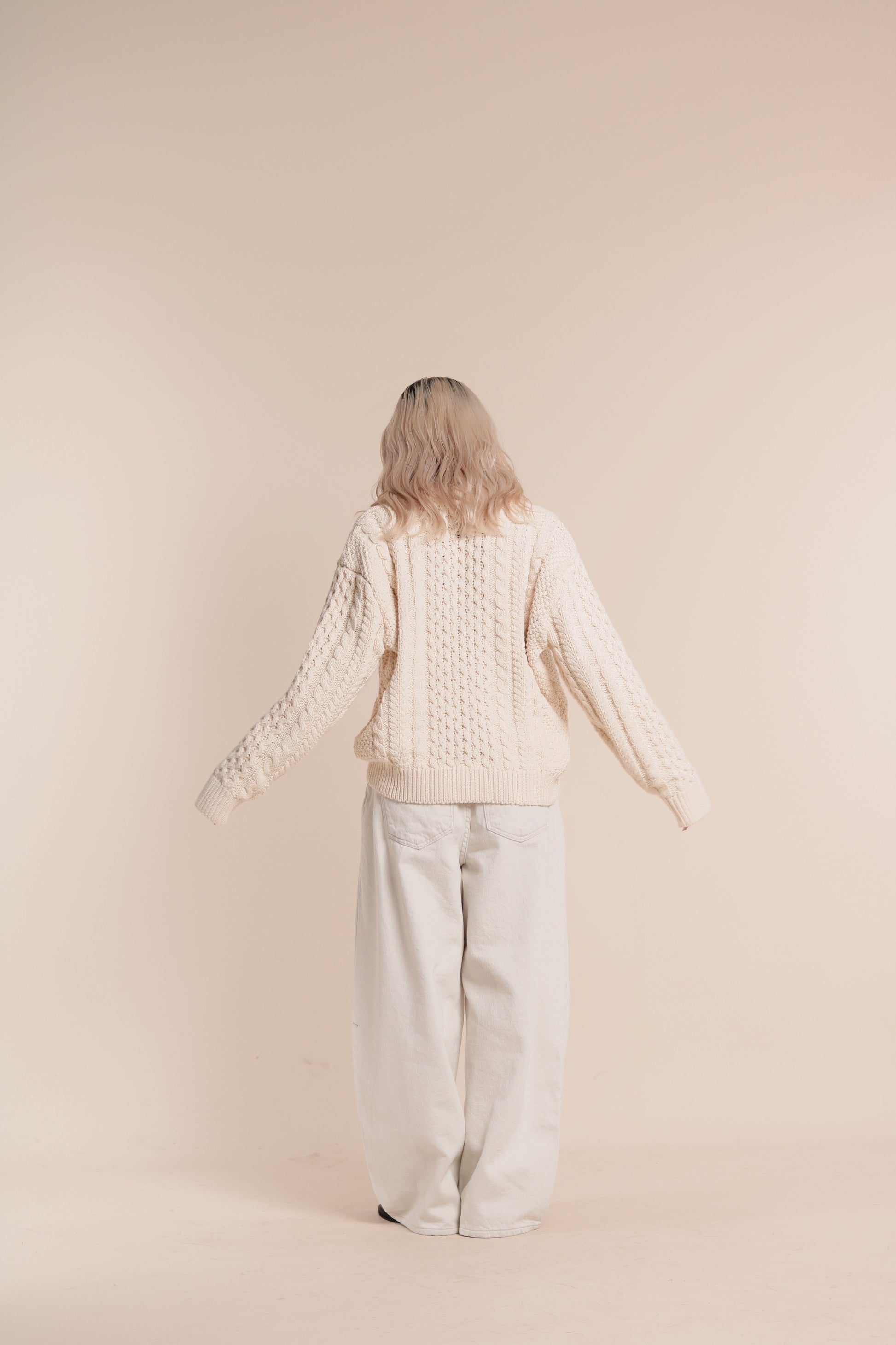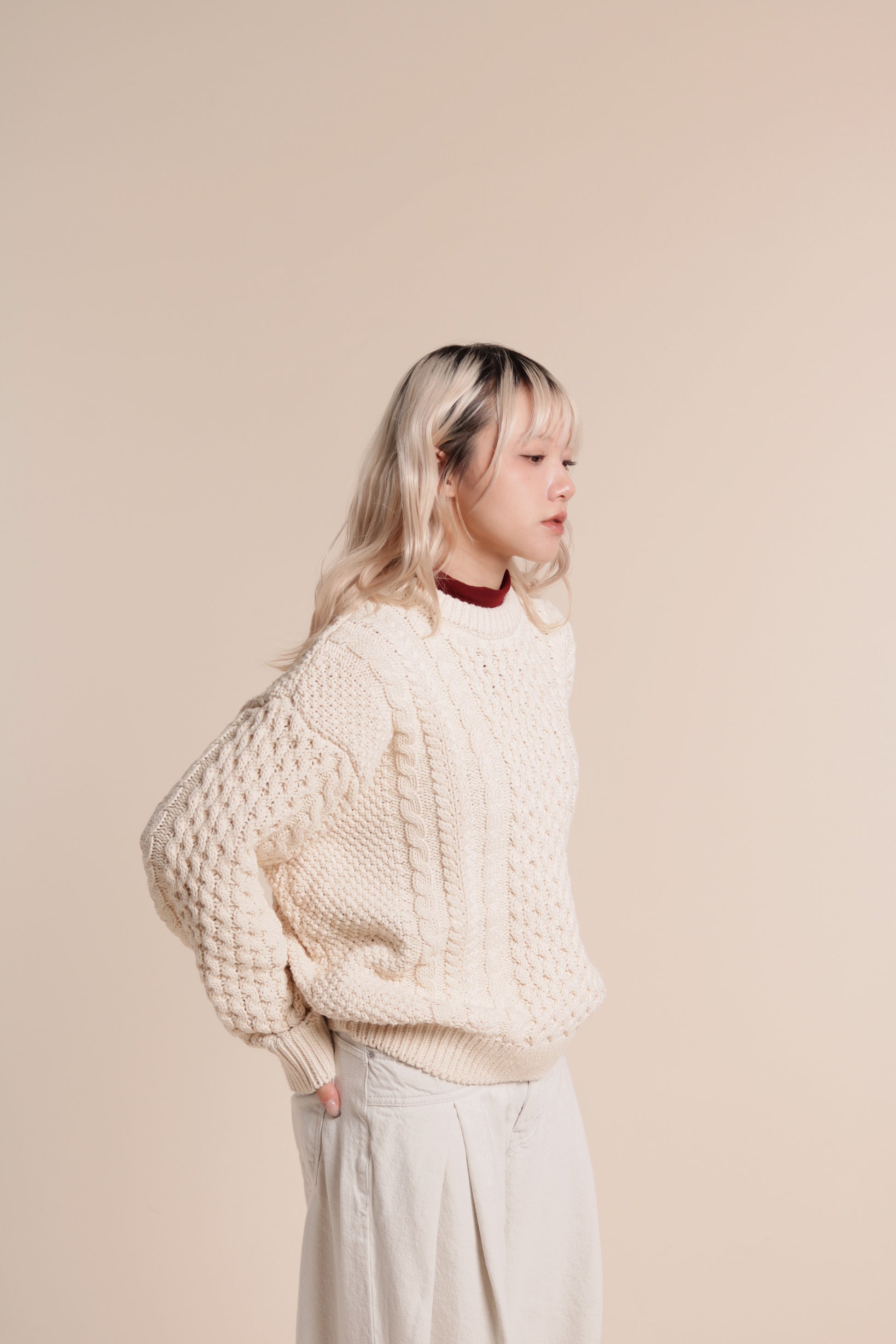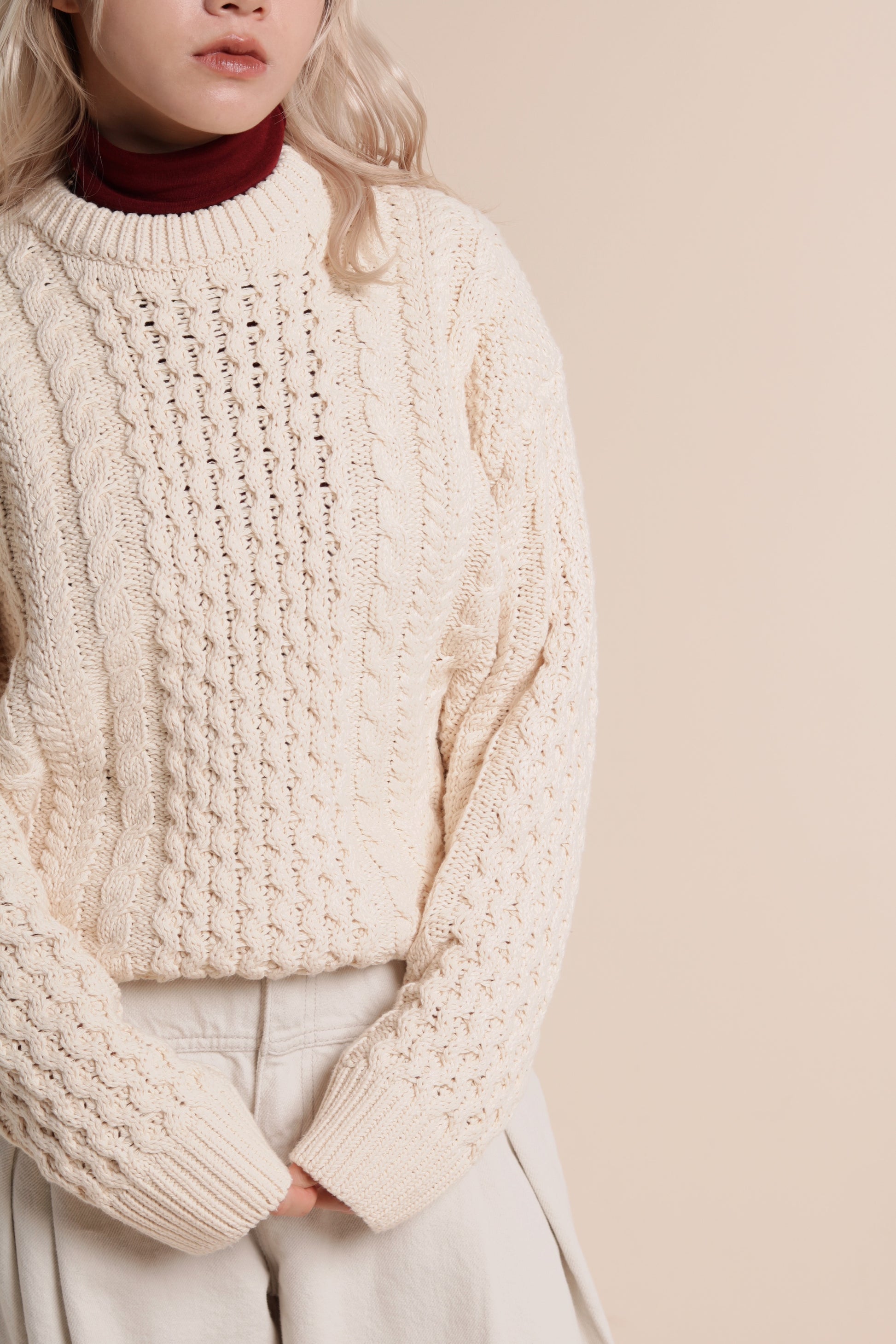 Oversized Cable Knit Sweater (Ivory)