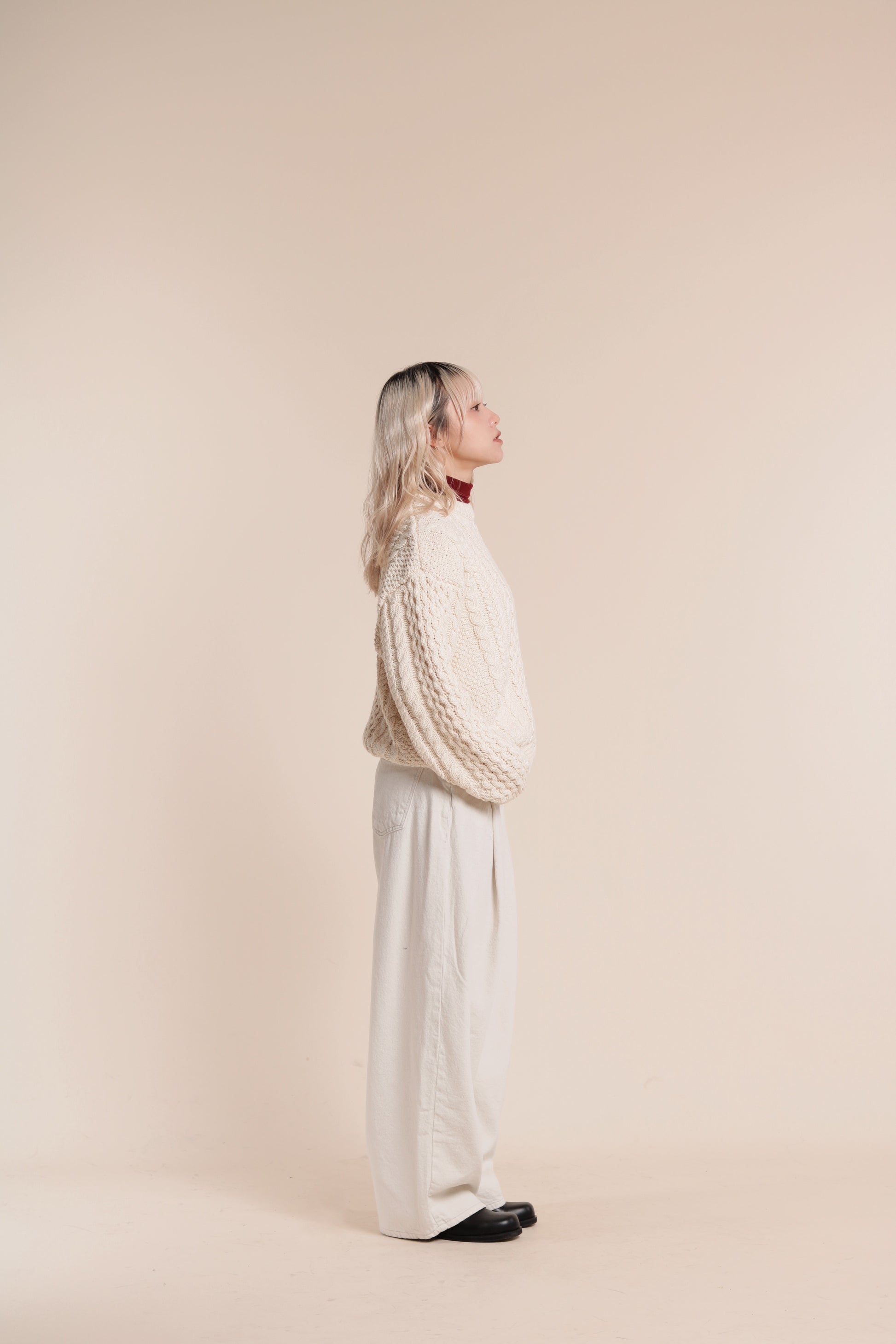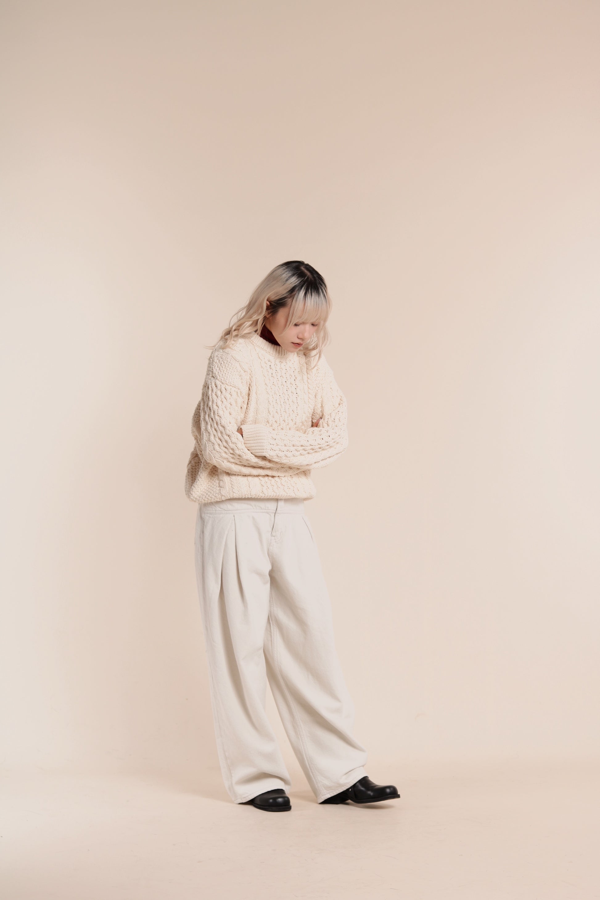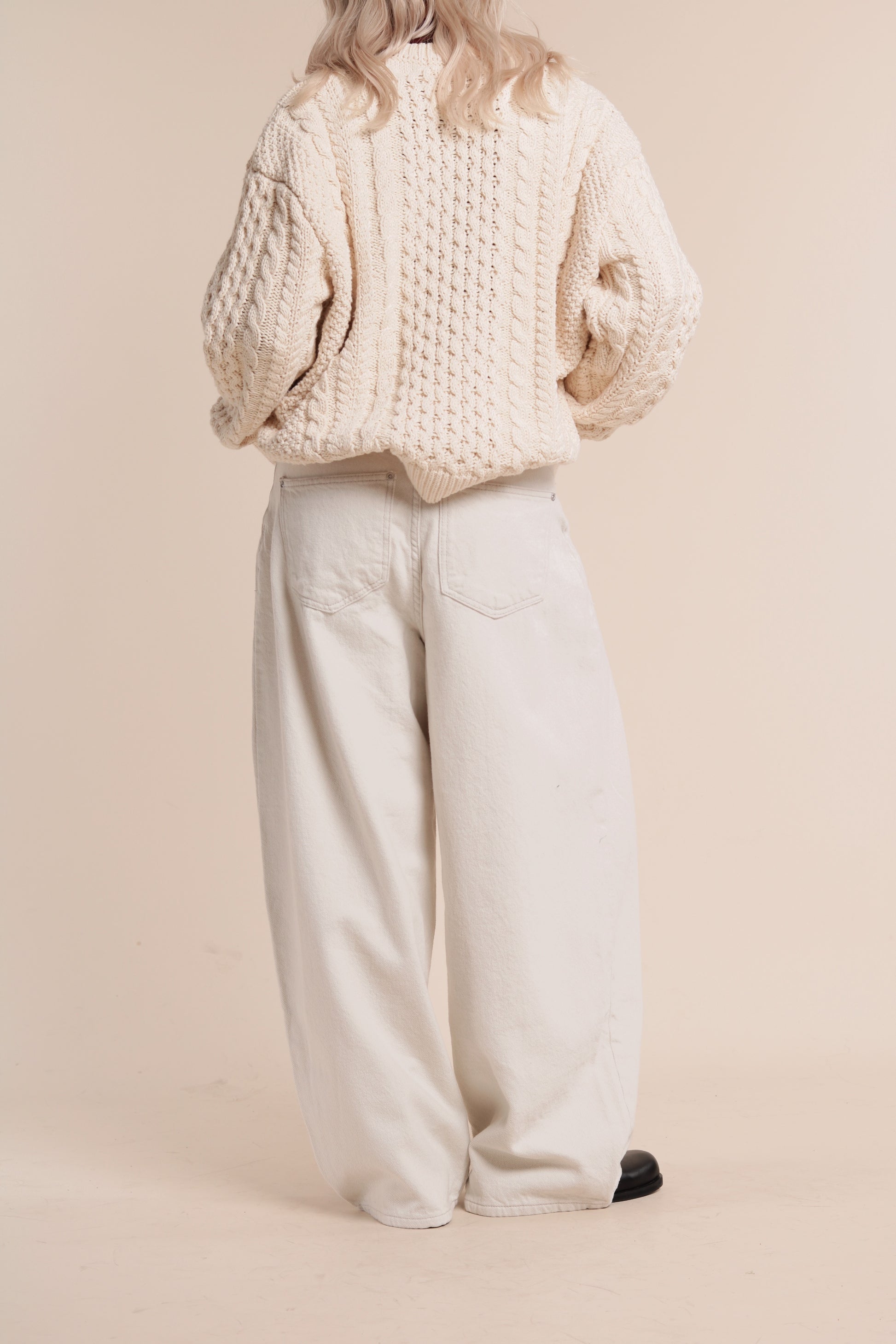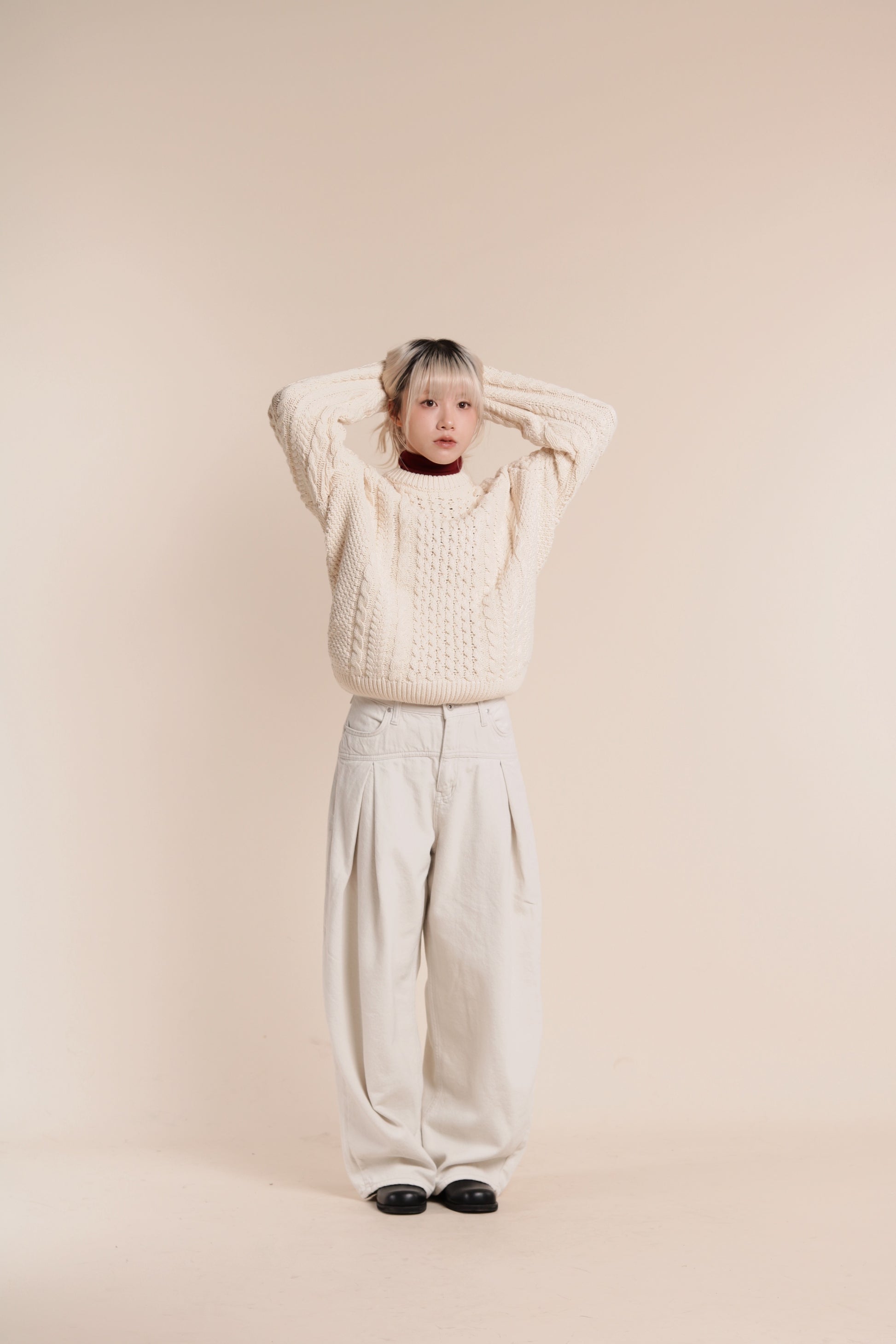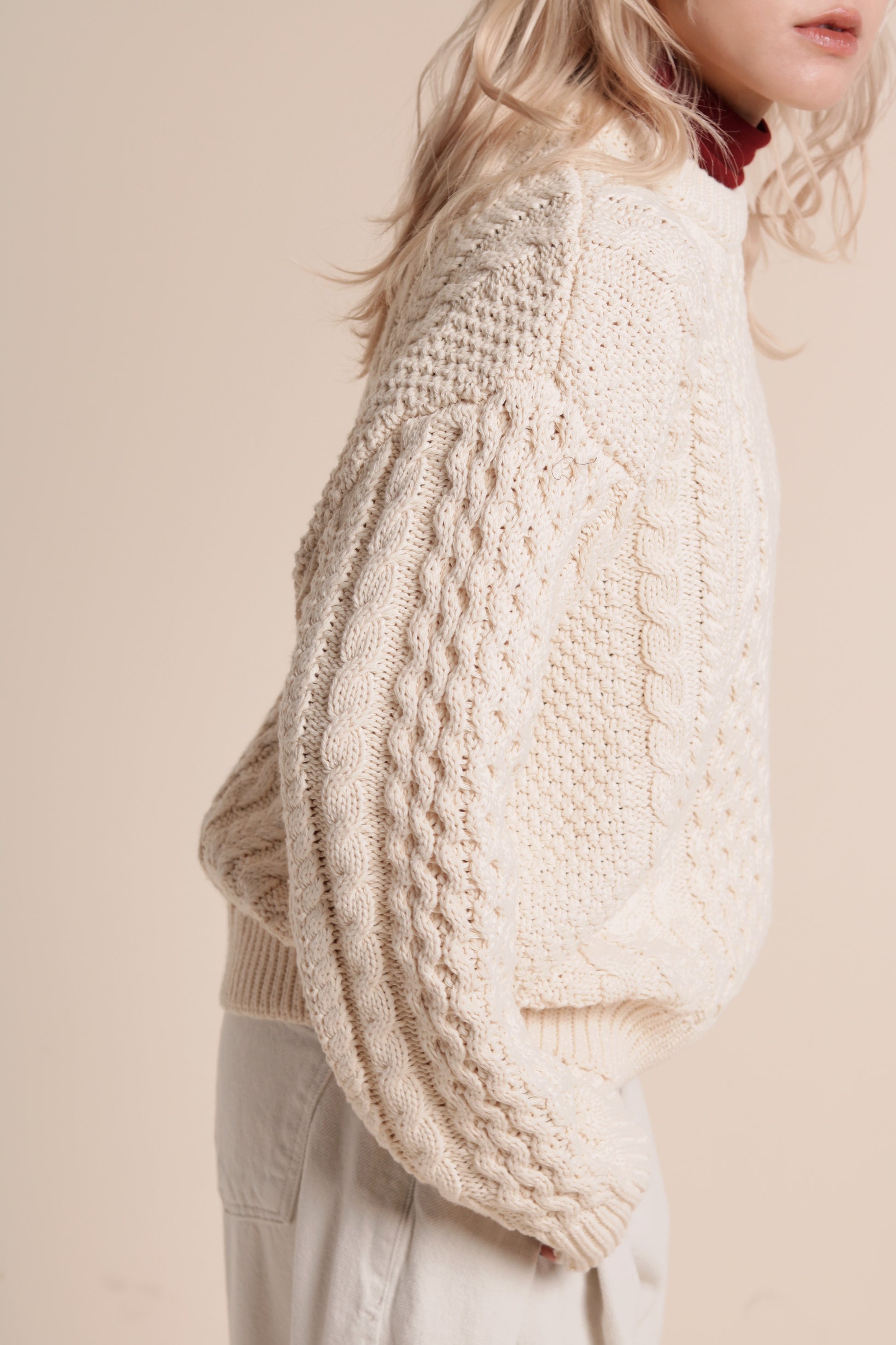 Oversized Cable Knit Sweater (Ivory)