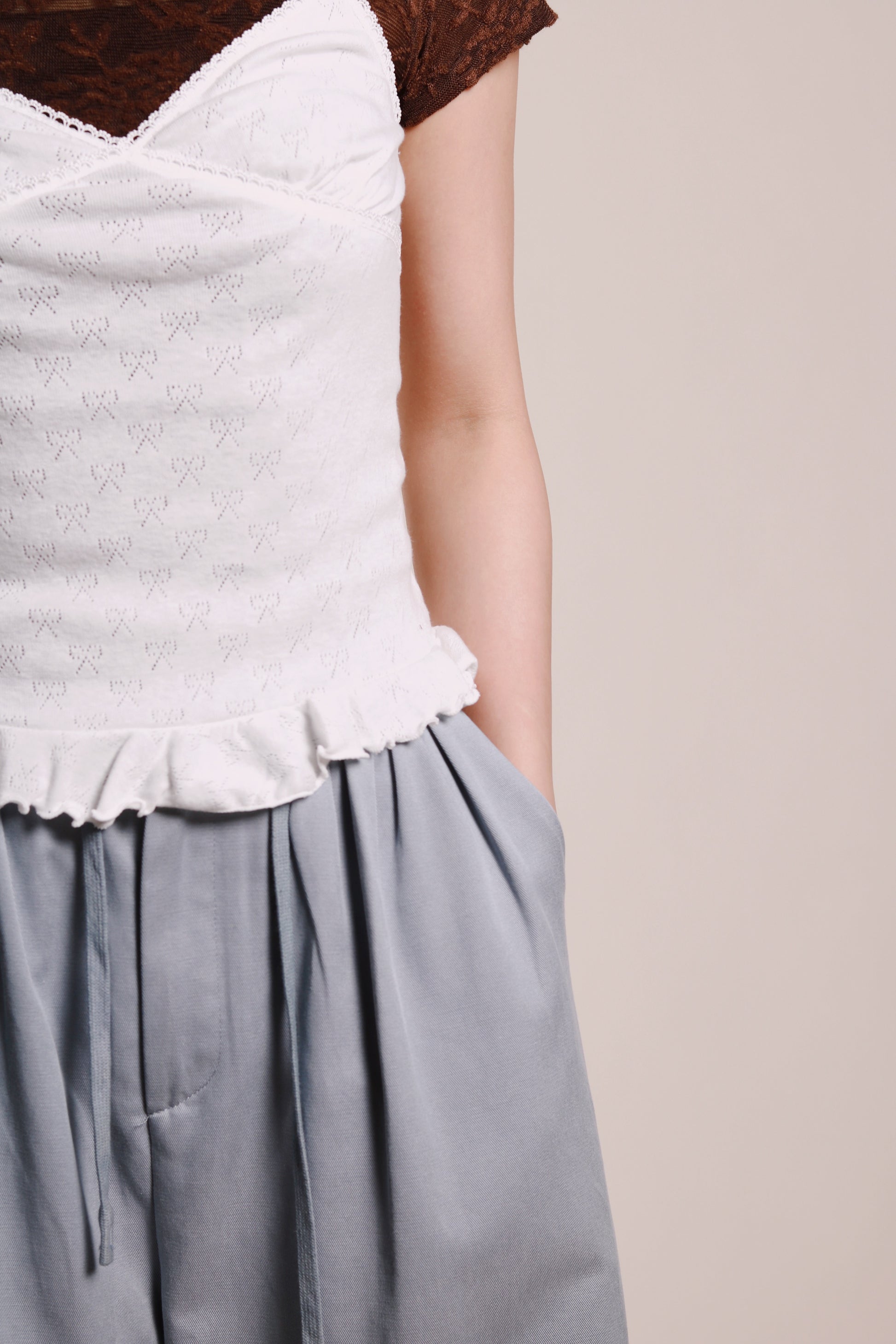 Ruffle Ribbon Sleeveless Top (White)